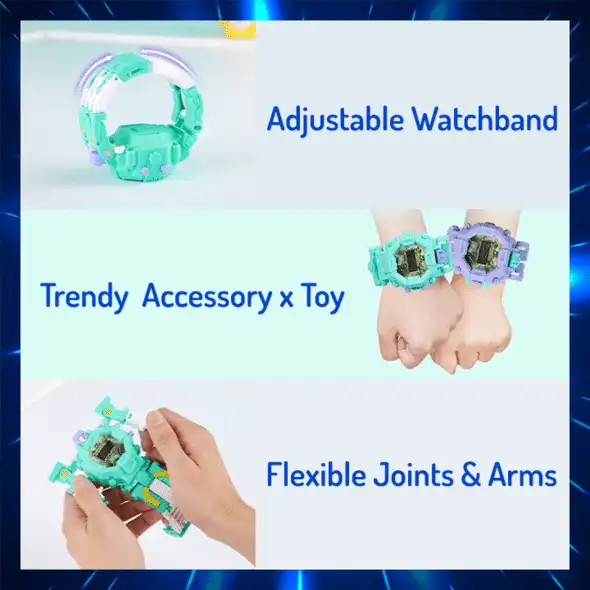 Divi vienā pārveidojošs robotu rotaļlietu pulkstenis