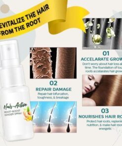 UzklājietyHair-Active Root-Boost Ginger Spray, 1 līdz 2 reizes nedēļā, uz sausiem vai mitriem matiem un galvas ādai ar maigu masāžu. Nav nepieciešams skalot.