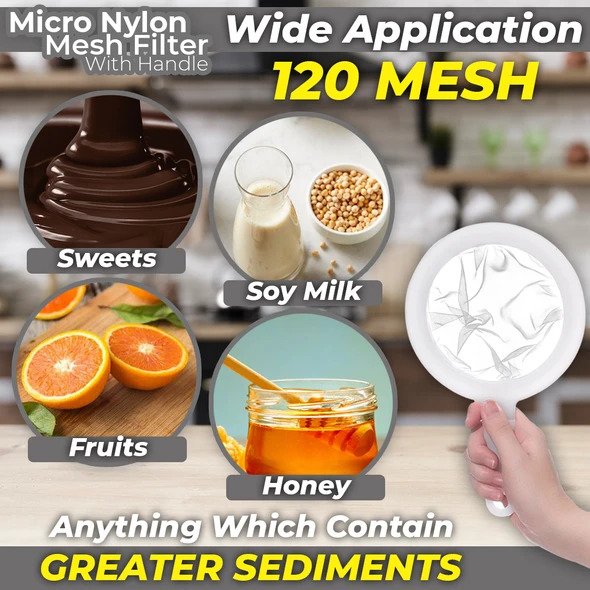 Mikro neilona sieta filtram ar rokturi ir šādas produkta funkcijas: