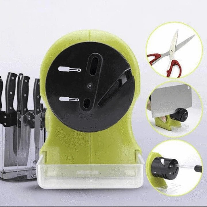 IEPAKOJUMA SATURS: 1 x motorizēts naža asmeņu asināmais