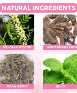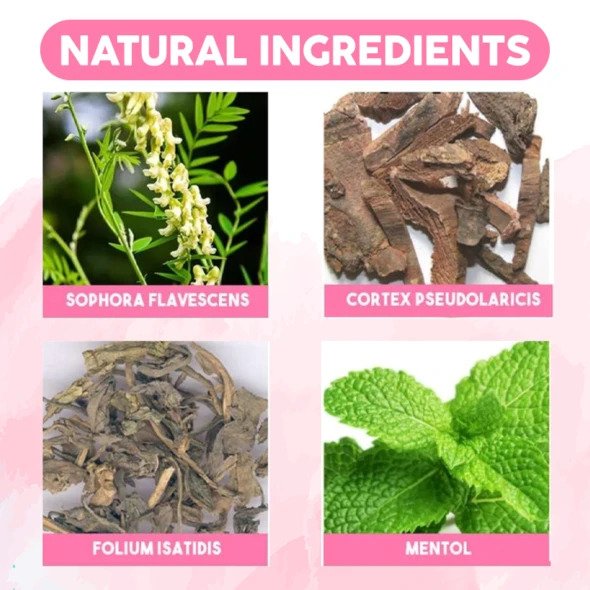 - Galvenās sastāvdaļas: Sophora Flavescens, Cortex Pseudolaricis, Folium Isatidis, mentols