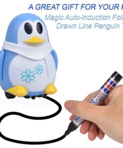IEPAKOJUMĀ IR: 1 rotaļlieta pingvīns (baterijas nav iekļautas), marķieris , papīrs