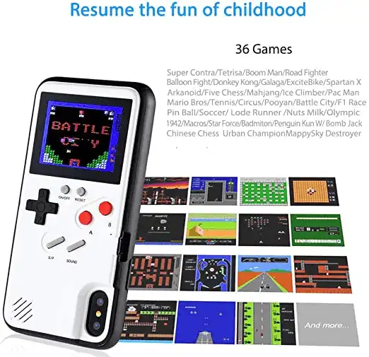 IEPAKOJUMA SATURS: Retro 3D spēļu tālruņa futrālis × 1; Uzlādes kabelis × 1