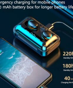 Funkcija: automātiskā savienošana pārī + skārienvadība, Bluetooth 5.0 + 2200 mAh uzlādes futrālis, HIFI stereo + IPX7 ūdensizturīgs